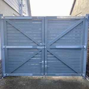 You are here: Home1 / Fencing & Gates2 / Bespoke Double Driveway Gates, in Light Grey with Steel powder coated Posts...